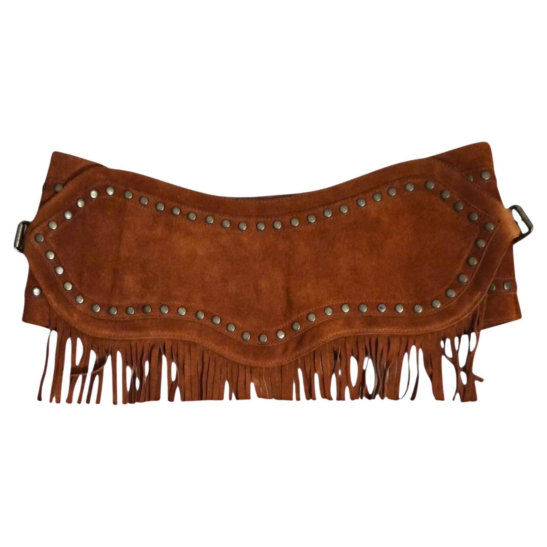 Superbe fin des années 90 vintage DOLCE & GABBANA kaki / marron coton et daim frange perlée boho chemise ! Il est doté d'un cordon de serrage flatteur ...