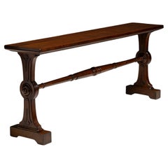 Opulente table de bibliothèque ou console en noyer français du XIXe siècle, réalisée à grande échelle. La table présente un cadre en noyer sculpté, réalisé dans le goût néoclassique ...