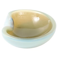 Ce magnifique bol ovale / ovoïde de Flavio Poli a été soufflé à la main dans les années 1960 en utilisant la technique du sommerso (immergé). Le verre qui l'entoure est violet avec u...