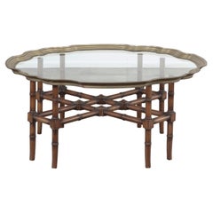 Table basse en forme de volute à plateau en acajou flammé et cuir estampé Weiman Regency