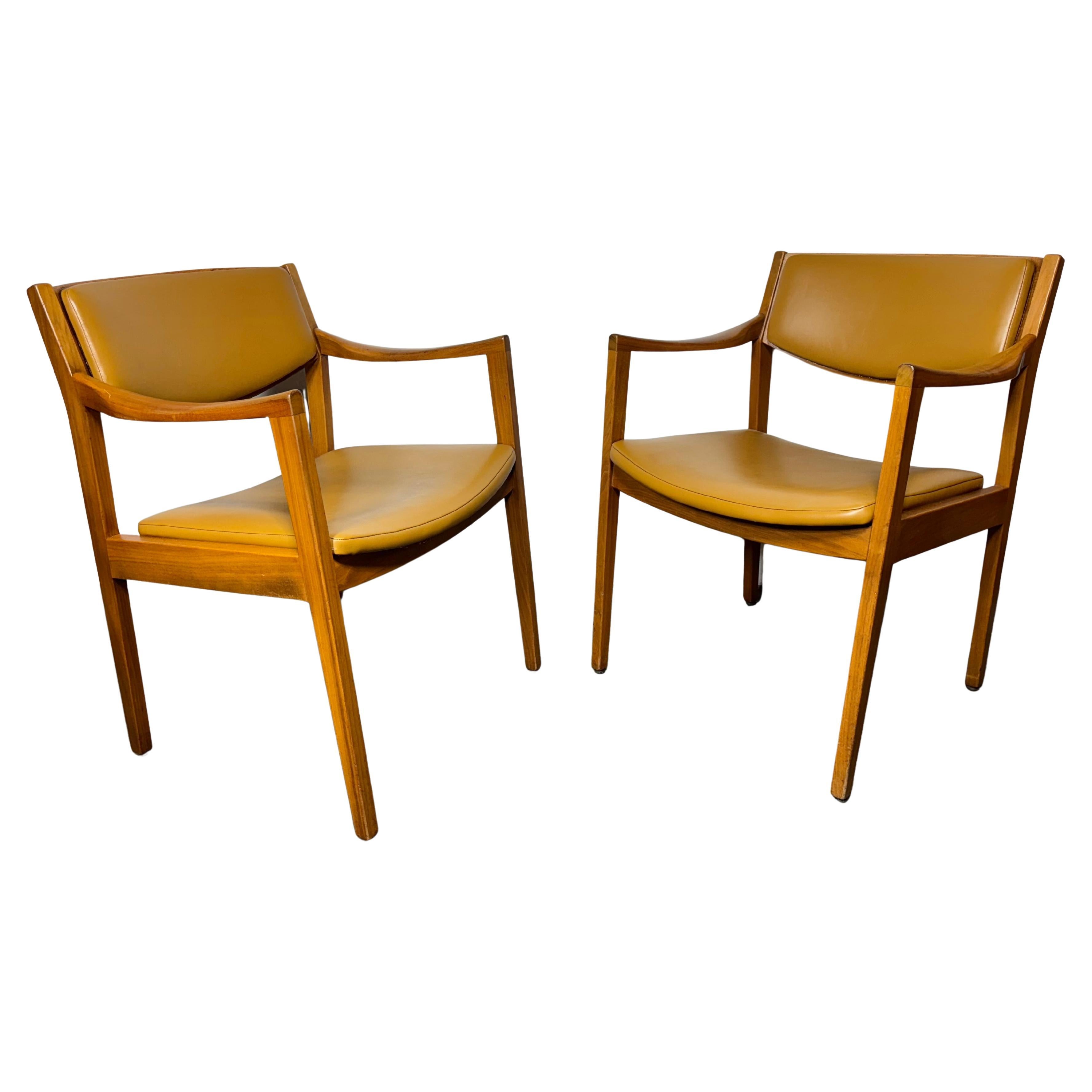 Paire de chaises de salon en noyer massif de style Jens Risom par Gunlocke, numérotée