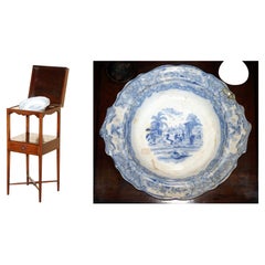Meuble de toilette en miroir de style victorien anglais avec bassin et pichet décorés