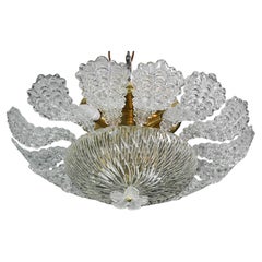 Ensemble de deux appliques en verre de Murano en forme de coquille datant du milieu du siècle dernier, attribuées à Barovier&Toso. Cadre en métal doré et accessoires en laiton. Ampou...