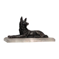 Sculpture en spath à patine noire sur socle en marbre, signée R. Rochard pour Irénée Félix René Rochard.