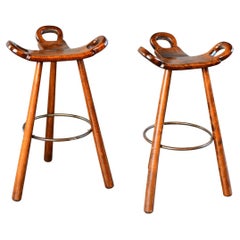 Paire de tabourets en bois conçus et fabriqués en Italie, c.C. 1960.