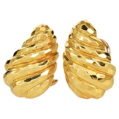 Métal : dômes en or jaune 18 carats avec dos oméga en or blanc 18 carats Poids : 12,5 grammes Diamètre : environ 18.5 mm Hauteur / élévation du dôme : environ 10,2 mm Style : Motif d...