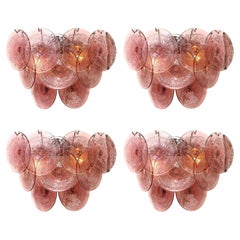 Appliques modernes en verre cannelé de Murano soufflé à la bouche, rose fumé, avec raccords en laiton