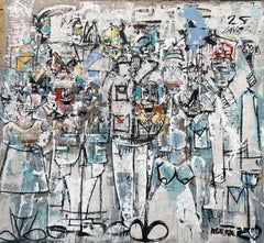 Titre : Les gardiens et le carnaval Peinture abstraite Moderne Audacieuse Investir Colorée Grande Joie Contemporaine J'adore les détails de cette œuvre d'art de Karnish. Cette œuv...