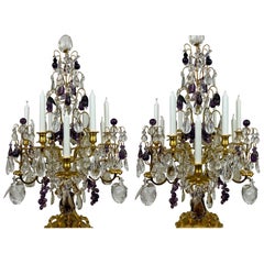 Paire de candélabres à cinq lumières en bronze doré de style Louis XV, datant du XIXe siècle