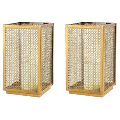 * Paire (2) de chandeliers en diskometal sur un pied carré cannelé