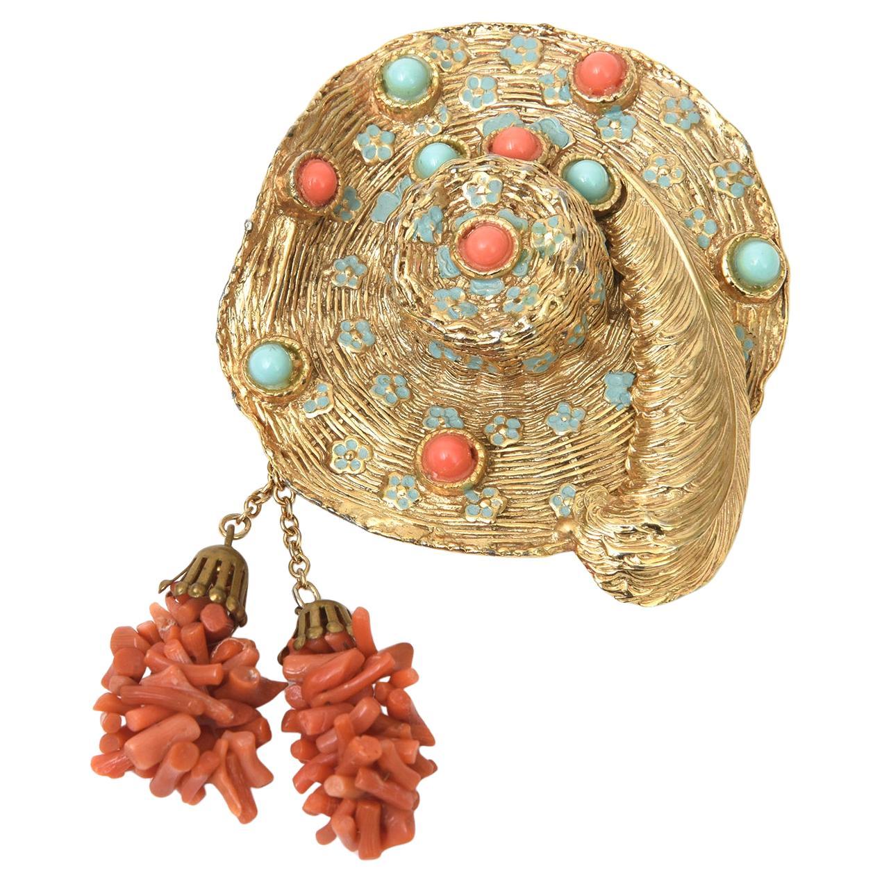 Dans les plus somptueuses nuances de rose et de fuchsia, avec de subtils accents verts, ce chapeau original des années 1950, décoré de fleurs de chapellerie, entouré de feuilles et d...