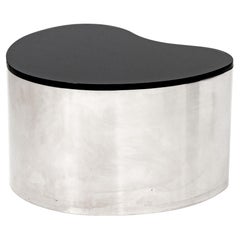 Table basse classique du milieu du siècle à plateau en verre de forme libre sculptural base laquée noire. La base comporte le cache-pot original doublé d'un insert, voir les images...