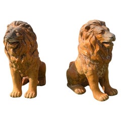 Pair 18th C. Carved Marble Terracotta Figures Lions Sculptures Garden Statues LA