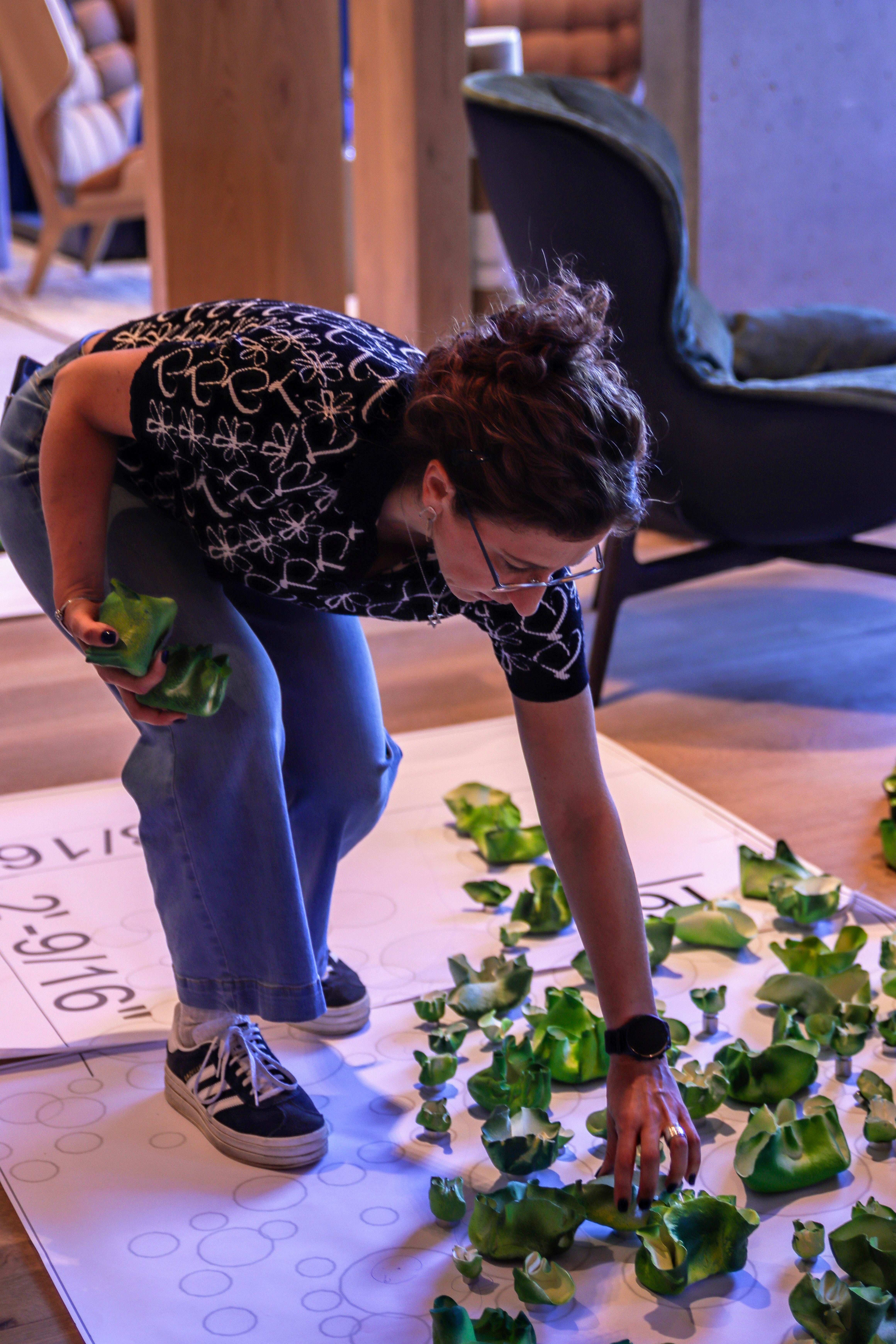 Me working on a layout of the 20-foot-tall wall installation, Everly, a luxury apartment building in Washington, DC.