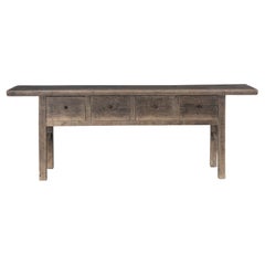 Console en orme vintage avec finition patinée et 4 tiroirs