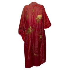Cet extraordinaire kimono Prada allie l'élégance du brocart à une allure nocturne et sophistiquée. Réalisé dans un jacquard riche en nuances de noir et de bordeaux, ce vêtement prése...