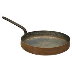 Ancienne marmite française en cuivre avec une poignée en fer forgé pour la suspendre au-dessus du feu, datant de la seconde moitié du 19e siècle. L'extérieur présente une belle patin...