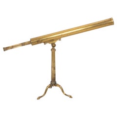 Télescope anglais victorien en laiton et bleu sur base tripode réglable en acajou.