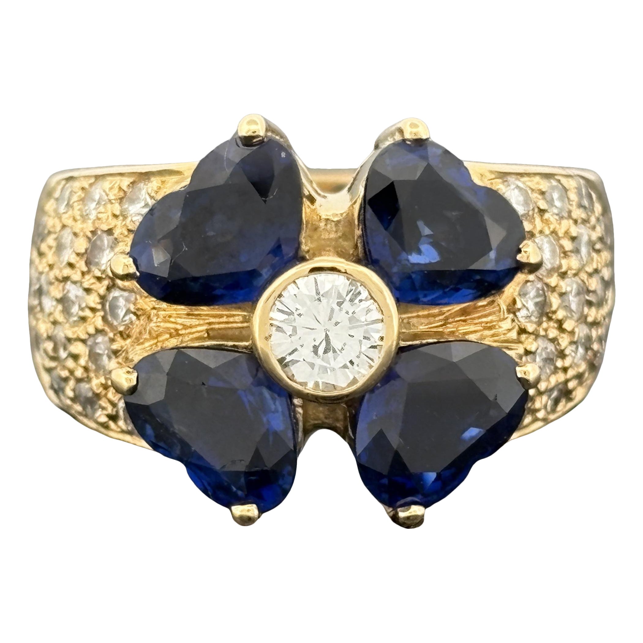 Saphir, Saphir bleu, Diamant, Platine, Or 18 carats