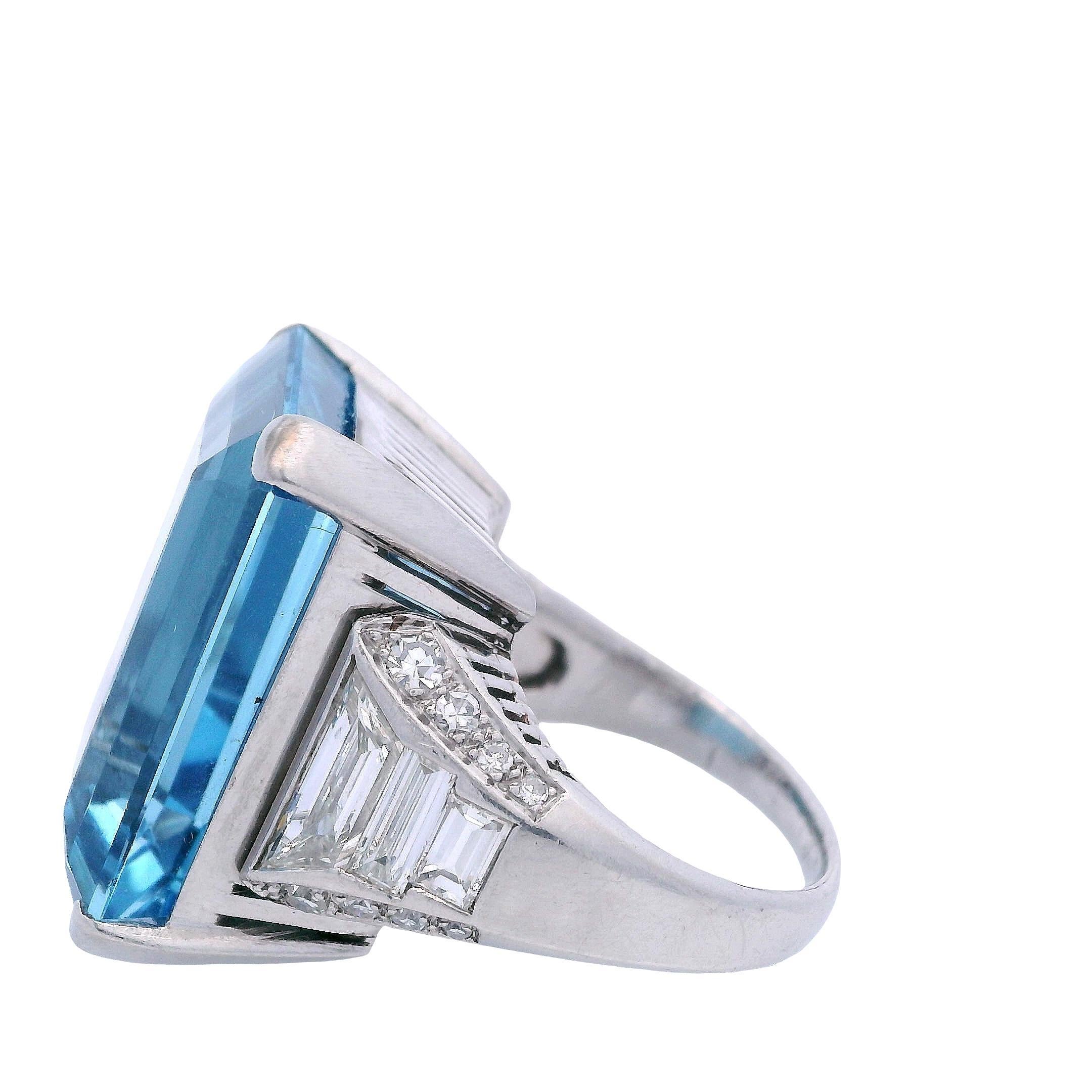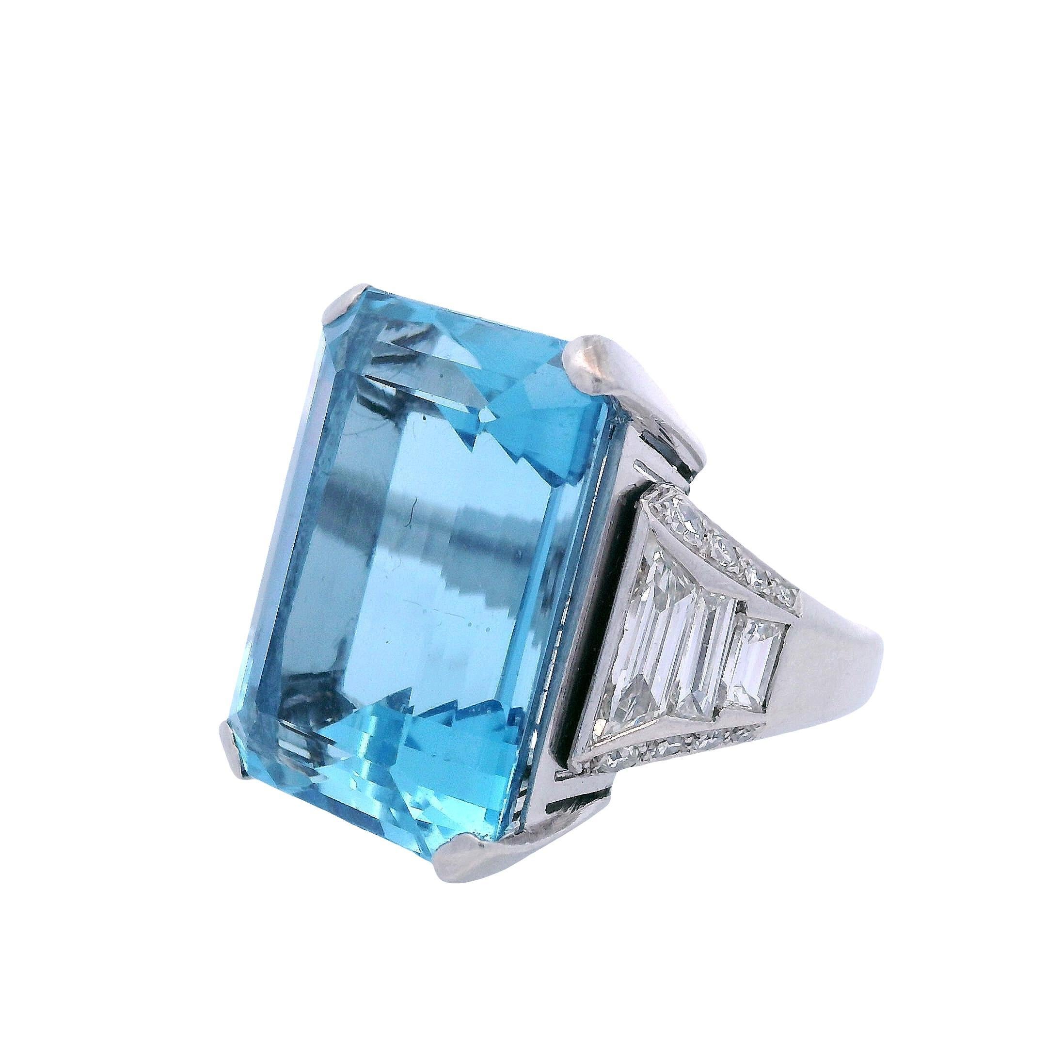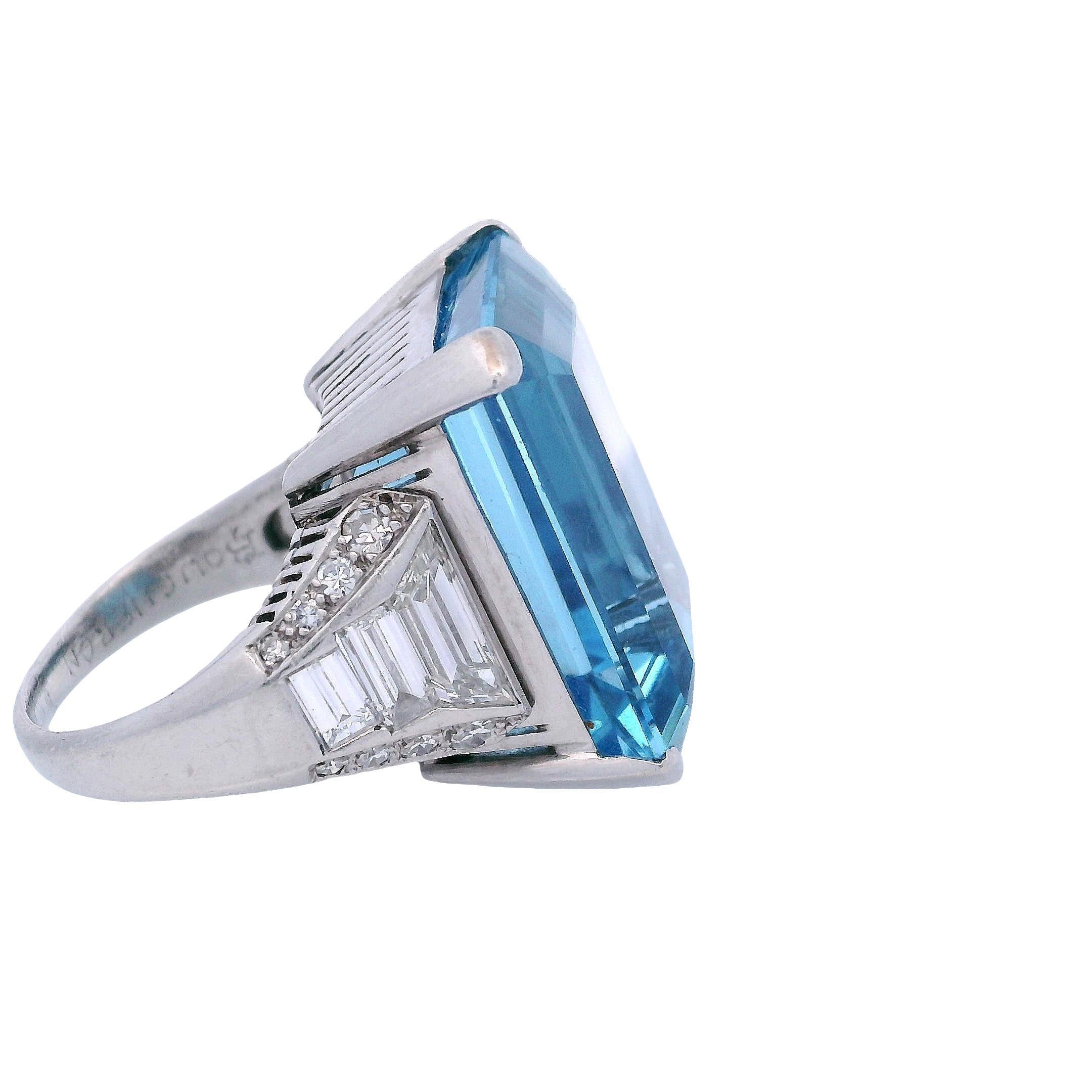 "Boucheron" Santa Maria Aquamarine 24.0 Cts Ring in Platinum with Diamonds