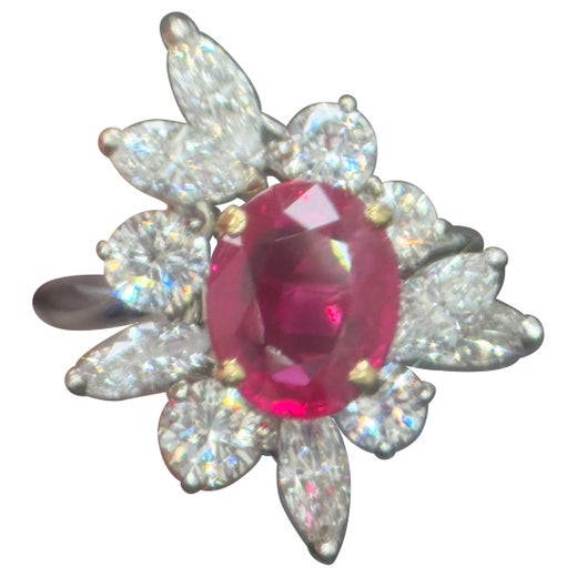 oreilles en or certifiées GIA 1.20 carat Burma No Heat Ruby White Diamond
