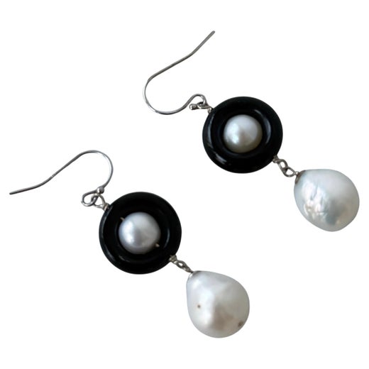 Hématite, Perle noire, Or, Or 14 carats, Or blanc, Rhodium, Argent, Arge...