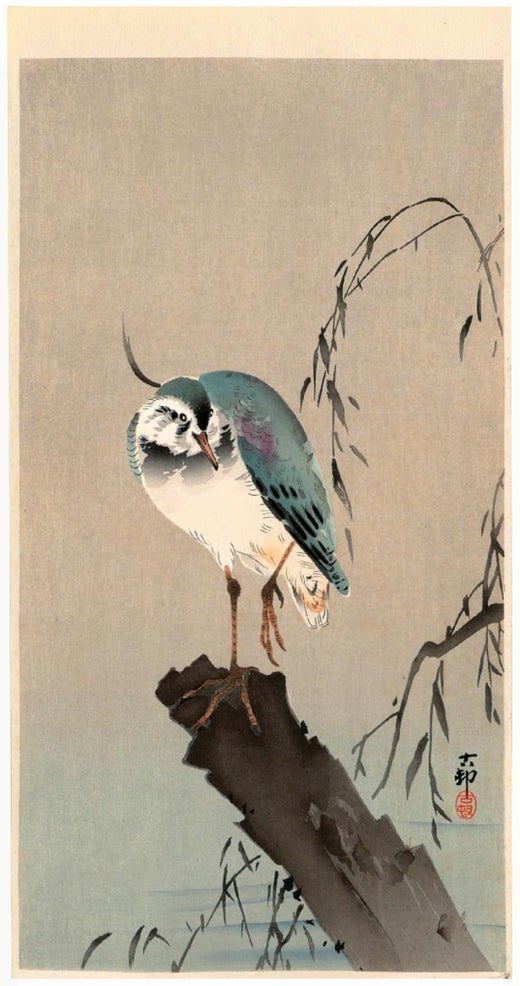 Ohara Koson était un graveur prolifique du 20e siècle, largement connu pour ses kacho-ga, des gravures d'oiseaux et de fleurs. Pendant ses études avec Artistics, il prend son nom d'artiste Koson, une adaptation partielle du nom de son professeur. Au début de sa carrière, de nombreux tirages de Koson étaient de couleur sourde et dégageaient un sentiment de calme et d'élégance. Les représentations d'oiseaux de Koson sont très réalistes, les détails du corps et des plumes en particulier étant toujours représentés avec un soin méticuleux.