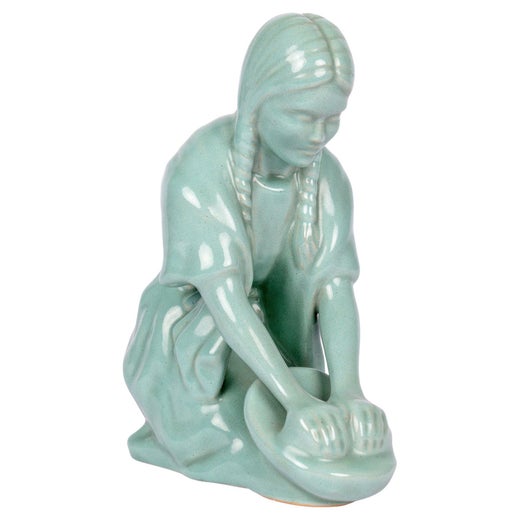 Lorsqu'ils sont transformés par l'esprit créatif et la main experte, ces matériaux deviennent l'essence même de l'humanité et de la nature, mélangées dans l'unité. L'argile et l'émail sont en effet des médias extravagants, qui offrent à l'artiste une vie entière de défis et de récompenses. Artus, cependant, n'a pas eu de vie - il a tragiquement contracté la tuberculose et, bien qu'il soit un homme relativement jeune, son avenir est incertain. Avant son arrivée au Colorado, Artus avait réussi à trouver une formule pour ces magnifiques glaçures mates, mais il a poursuivi son travail là-bas, à la recherche d'un niveau de perfection qui n'avait pas encore été atteint. La poterie est un mélange d'art et de science, et à l'époque où il menait ses expériences, Artistics savait que le succès ne pouvait venir sans la patience d'un scientifique et la passion que l'on trouve chez tous les grands artistes. Il a poursuivi sa vision avec un effort inlassable, bien que les effets d'une santé défaillante aient souvent interrompu ses progrès. Aucune date précise n'est consignée, mais un jour du printemps 1901, il est entré dans le four, avec l'anticipation bien connue d'innombrables potiers à travers les âges, et a finalement tenu dans ses mains la poterie parfaite, riche, à l'émail mat qu'il recherchait depuis si longtemps - les premières pièces créées depuis des siècles, les premières jamais créées de ce côté-ci du monde. En dépit d'une santé chancelante et d'un objectif qu'aucun artiste occidental n'avait jamais atteint, il a réussi ; sa passion s'est concrétisée - un art perdu est en train de renaître. Le monde allait à nouveau voir et toucher les émaux doux comme le marbre, connus pour la première fois par les anciens maîtres chinois à l'autre bout du monde et à tant de générations de distance.