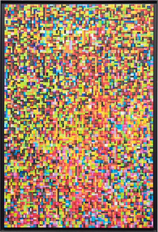 Inspiré par les débuts de l'art non représentatif, MEAN traite ses abstractions comme un moyen de manipuler la réalité. De près, elles peuvent rappeler les peintures modernistes de Seurat ou de Mondrian. Il y a du mouvement dans l'image fixe - des moments dans la composition qui entrent et sortent du champ de vision, qui obscurcissent et révèlent au fur et à mesure que l'on regarde. Générant sans cesse de nouvelles expériences de perspective, les peintures de Fokkens remettent en question nos perceptions et nous permettent de jeter un coup d'œil dans d'autres mondes.