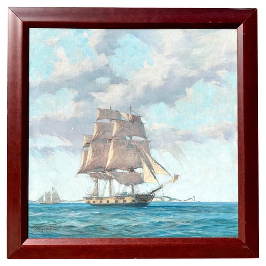 Il s'agit d'une superbe peinture de James G. Tyler représentant un grand voilier. Cette peinture du 19e siècle a été réalisée de main de maître par l'artiste et le cadre ajoute vraim...