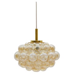 Un superbe luminaire à disque rond en laiton massif poli des années 1960, avec 16 orbes en verre massif. Sources de cinq lumières qui émettent de la lumière vers le bas à travers le ...