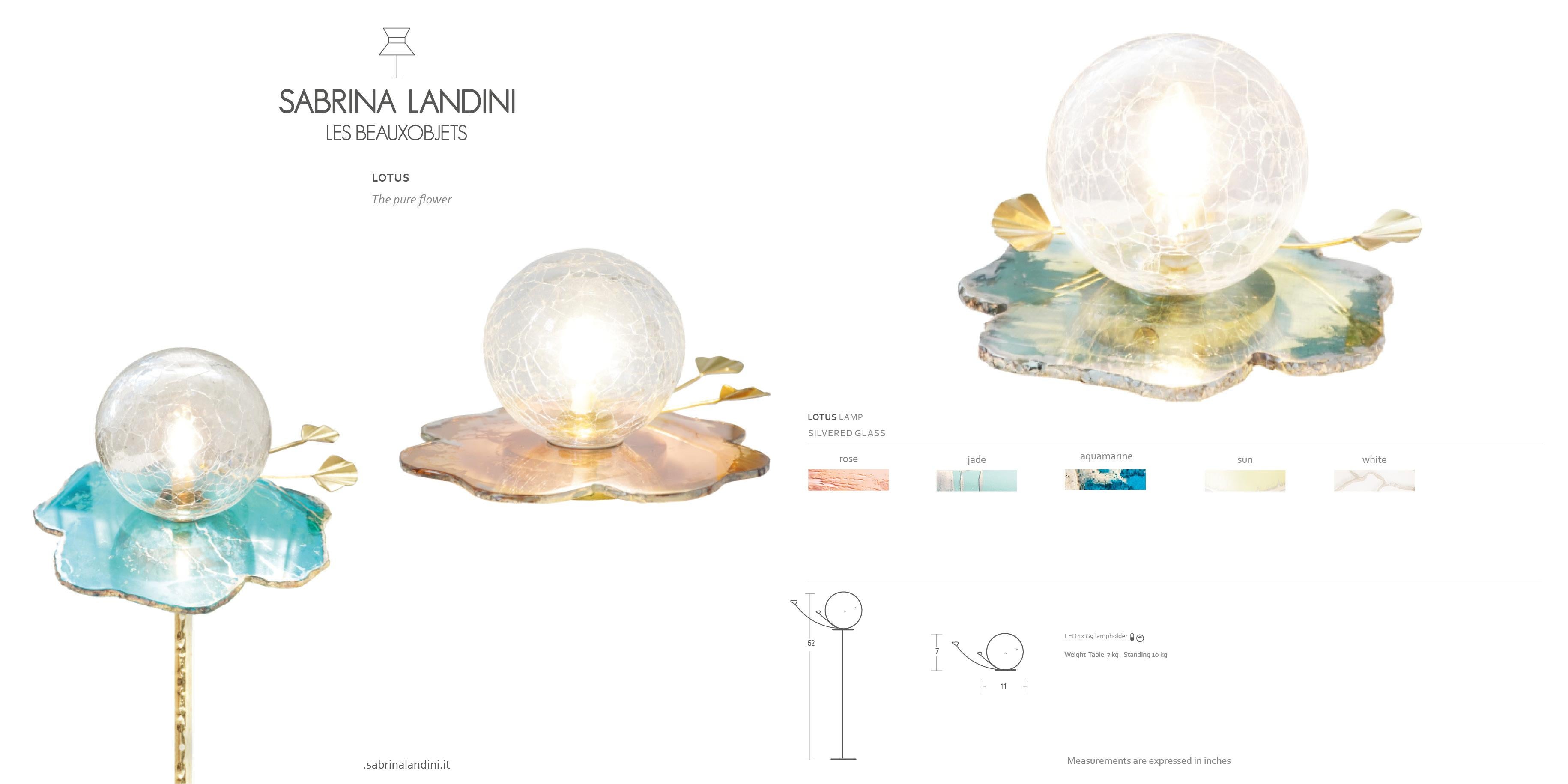 La designer italienne Sabrina Landini est surtout connue pour ses séduisants objets décoratifs faits à la main et luminaires. Soutenu par une petite équipe d'assistants en Toscane, Landini crée des pièces lumineuses et optimistes modernist qui reflètent une forte féminité. L'élégante série de luminaires Tiffany de sa marque éponyme - une ligne célèbre qui comprend lampes de table, lampadaires et plus encore - est inspirée par le personnage emblématique d'Audrey Hepburn dans Breakfast at Tiffany's, sorti en 1961.