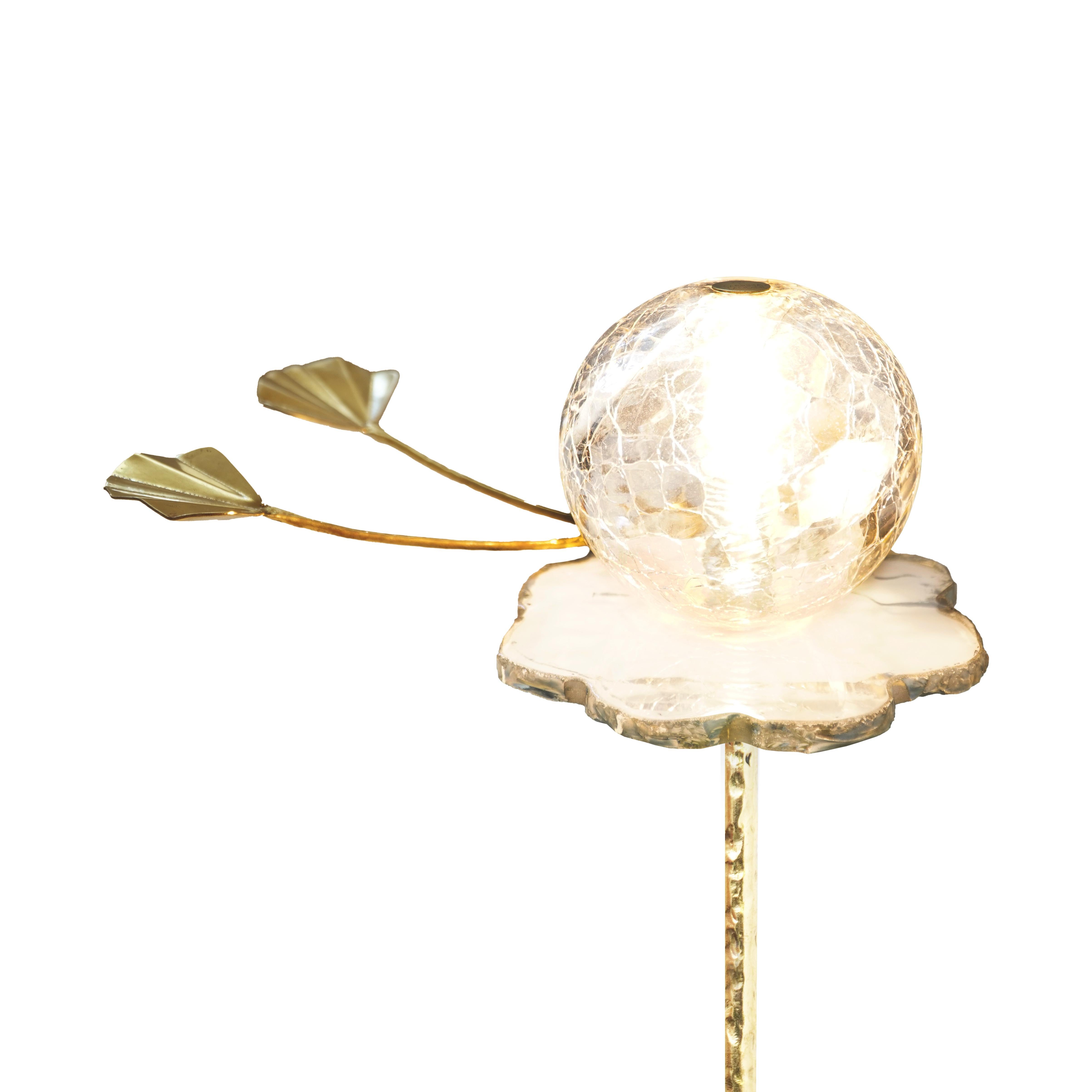 "Lotus" Lampadaire contemporain, trèfle en verre argenté d
