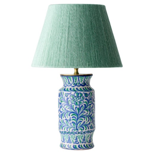 Fajalauza Granada Lampe à poser en céramique bleu vert, abat-jour en laine mérinos neuve