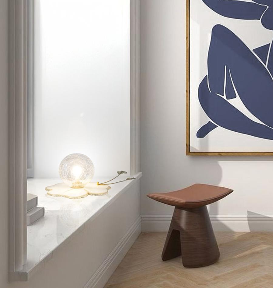 "Lotus" Lampe de table contemporaine, verre argenté d