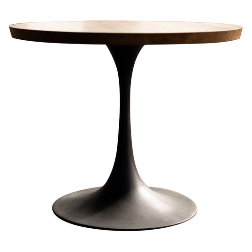 Table de salle à manger ronde de 60" en chêne blanc et incrustations d'étain socle moderne en acier est une variante de notre socle Sunrise comme piédestal pour une table de salle à ...