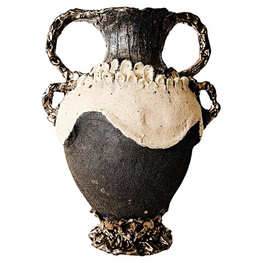 Organic Vessel V, où l'exploration des oxydes imprimés à la main et des glaçures personnalisées "s'entrechoquent" pour créer un art captivant. Chez The Shine Studios, les vases moder...