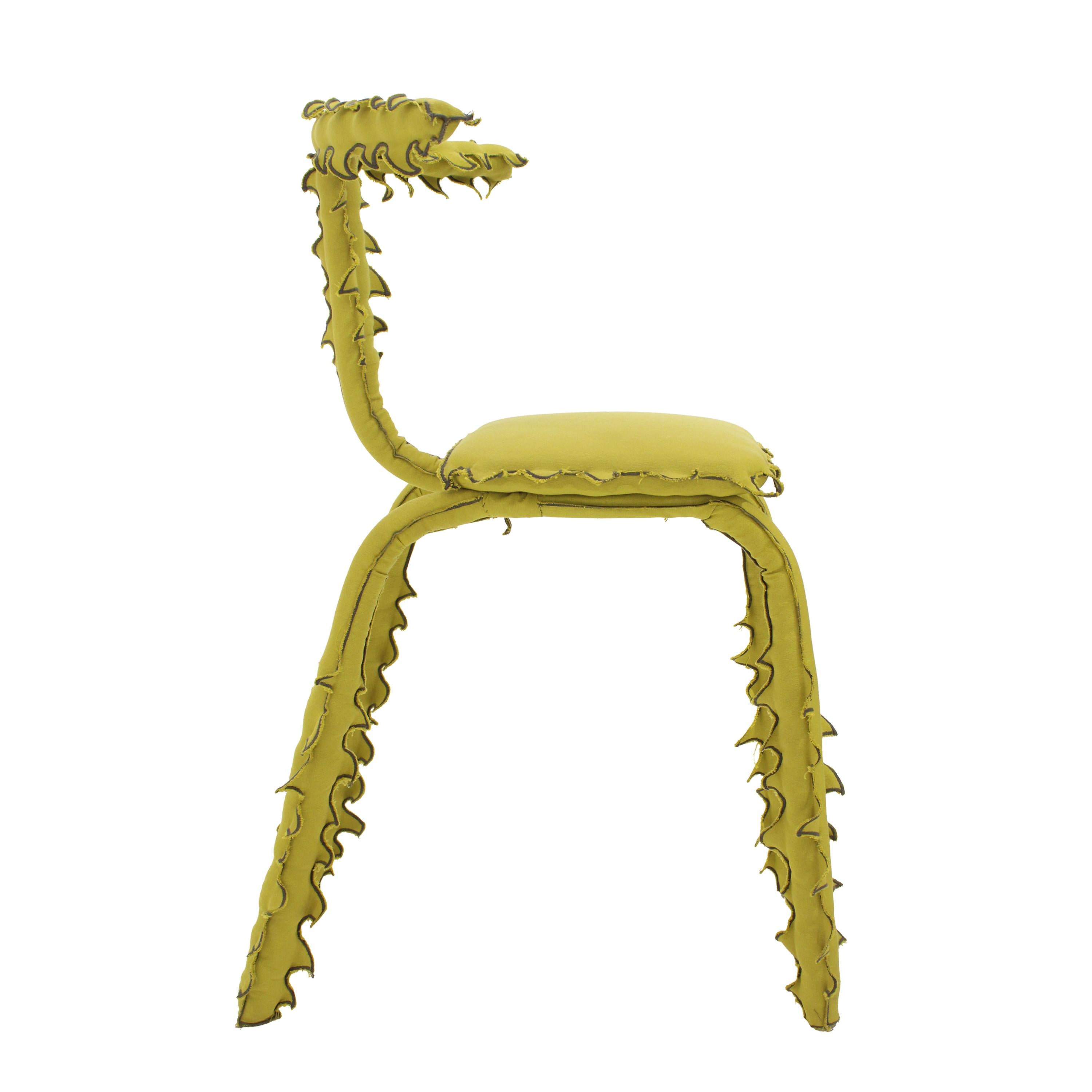 Ce "déguisement" textile confère à la chaise une présence hybride : à la fois objet fonctionnel et être mythologique. Chaque pièce acquiert son propre caractère, une voix visuelle qui interagit avec l'espace environnant et le transforme.