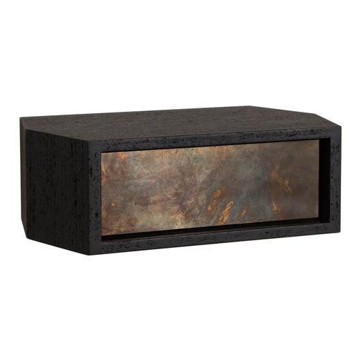 Représenté : Coffret mural en Maykume noir avec face de tiroir en laiton fumé