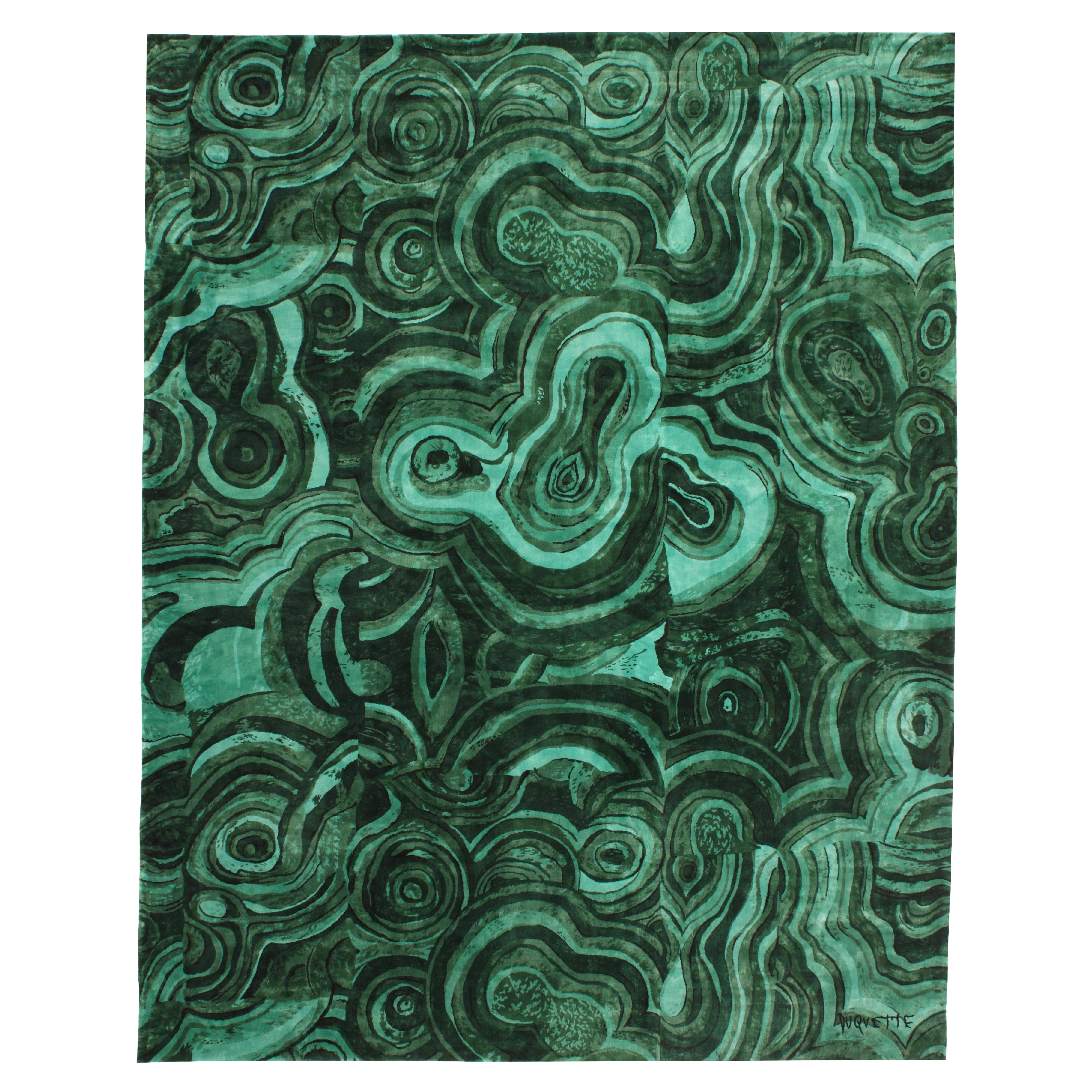 Vert brumeux, Design/One moderne, Sans bordure, Pure laine, Noué à la main, Tapis d'Orient Matières premières : Laine Latex : Pas de poils hauteur : 0,25 pouces Style : Contemporain...