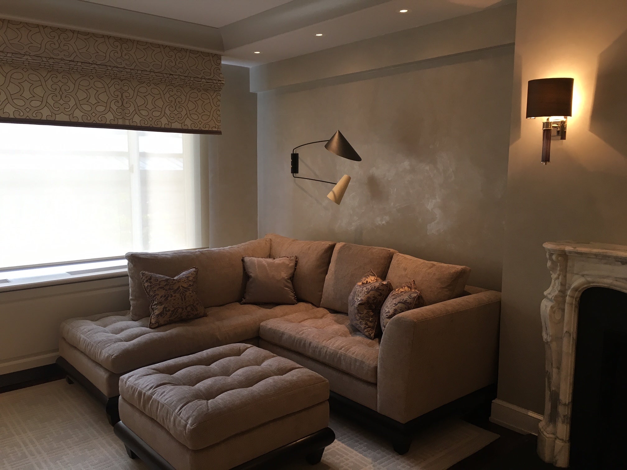 The client requested a soothing mix of Art Deco style with modern amenities. The customized finishes, luxe fabrics, and venetian plaster walls are all a nod to the views into the Frick Museum s gardens across the street.