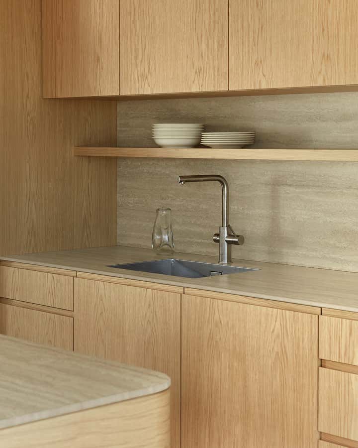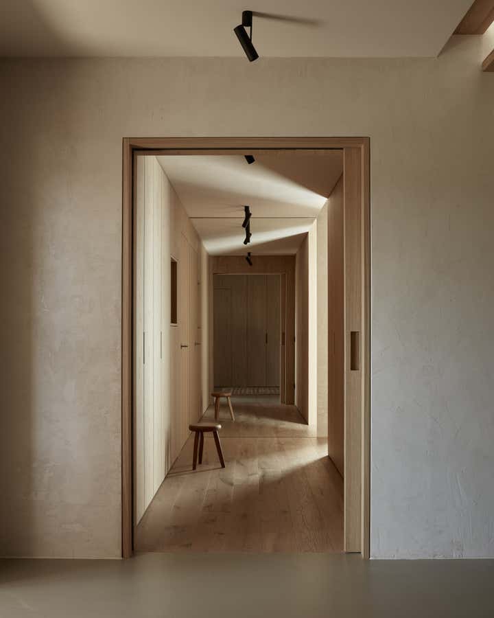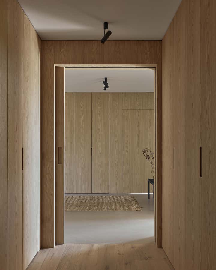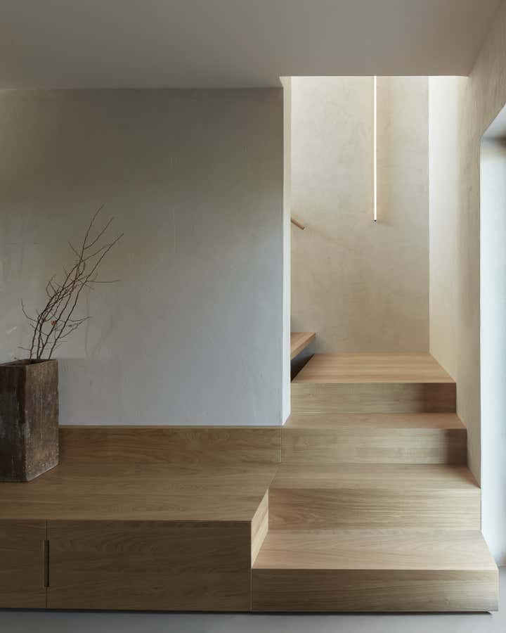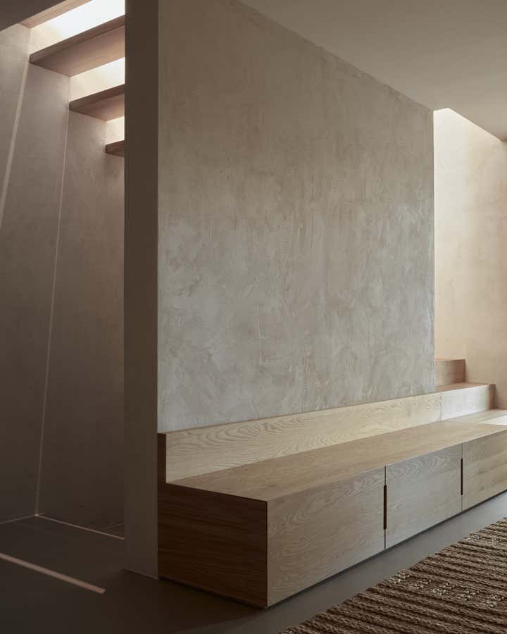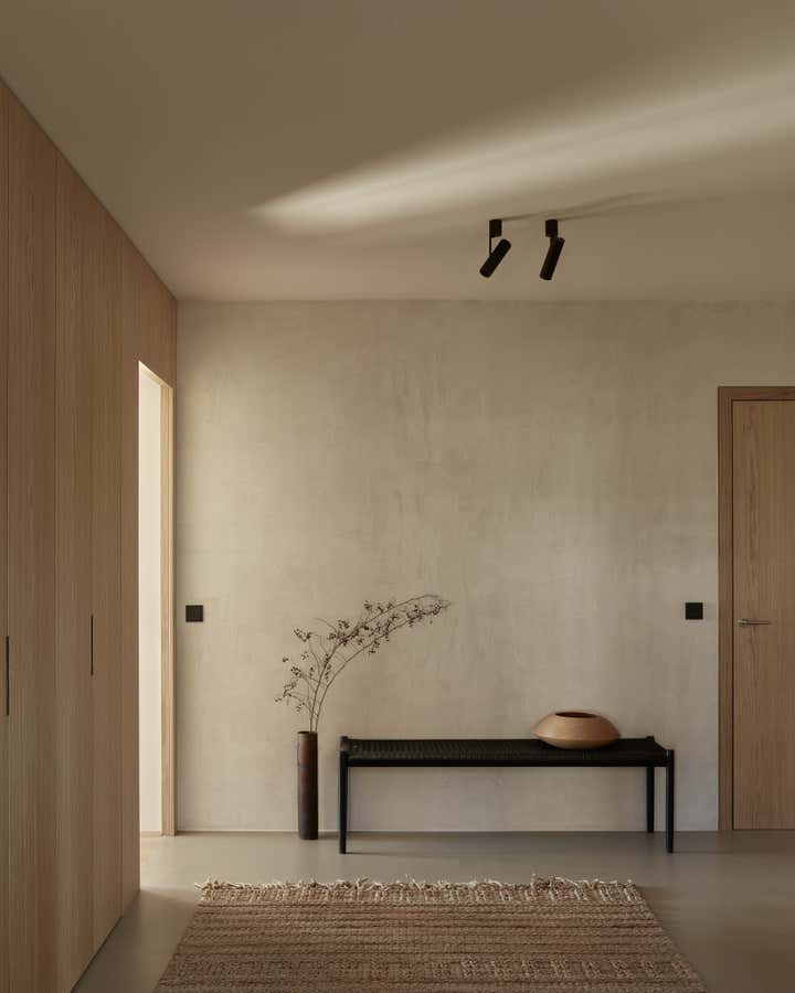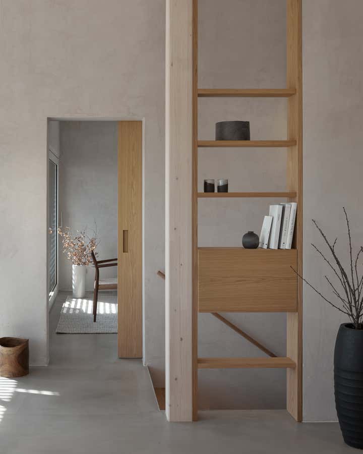 Before hand-selecting the warm decoration and furnishing, we opted to completely redesign the floor plan to elevate the distinct .PEAM materials. Generous oak wood, the natural monochrome tones of lime plaster walls and exquisite polished concrete. The result is the synergy of the unseen elements of tailor-made homemaking: peace and relaxation.