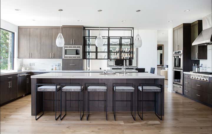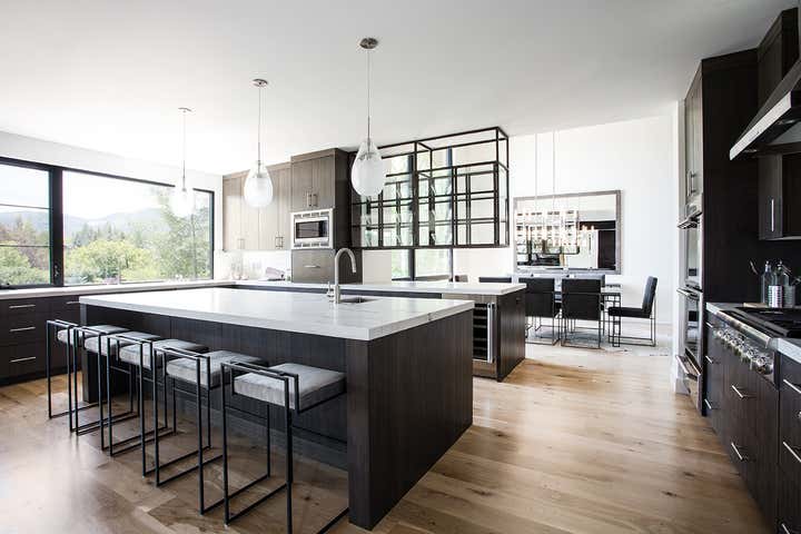 More than a remodel, this 5,000 square foot home enjoyed a reinvention for the 21st century. Jaffa dismantled the original 1980’s structure down to the studs. Out with closed, dark interiors and in with a brighter, open, loft-like feel, creating a modern, connected flow from the living room through to dining and kitchen spaces into the family room. An open-tread steel staircase featuring a custom railing offers a visual highlight elegantly connecting the upper and lower levels. An airy new column design replaced heavy log elements while sleek glass and steel cabinetry and larger windows similarly added refreshed functionality. This 5 bedroom, 6 bath – perfectly perched on the Park Meadows golf course overlooking the mountains – is now the knockout ski getaway it deserved to be.