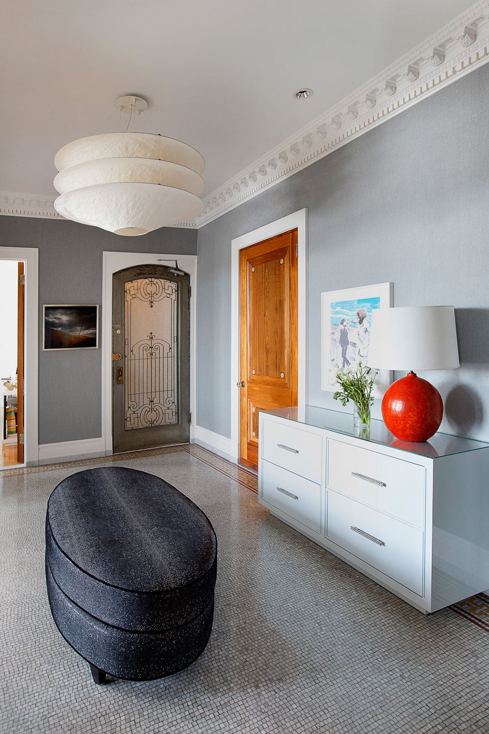 Family apartment at The Langham accented by vintage pieces custom details.
