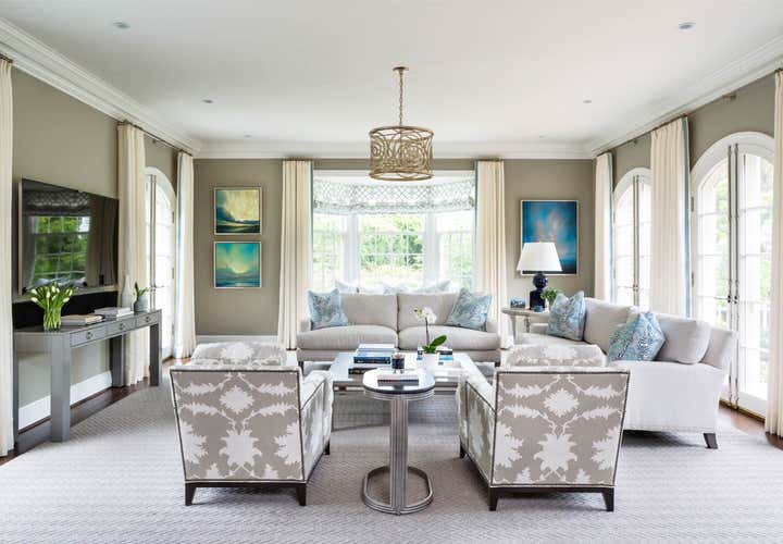 Creating a sophisticated, yet livable, family space was the name of the game at our project in the Kenwood neighborhood of Bethesda. Working closely with the project s architecture and contractor, we worked to create a seamless flow for family life but also plenty of room for adult fun. Using perfectly designed architectural elements allowed us to pair exceptional artwork with a sophisticated muted palette. The end result was a space the entire family could enjoy.