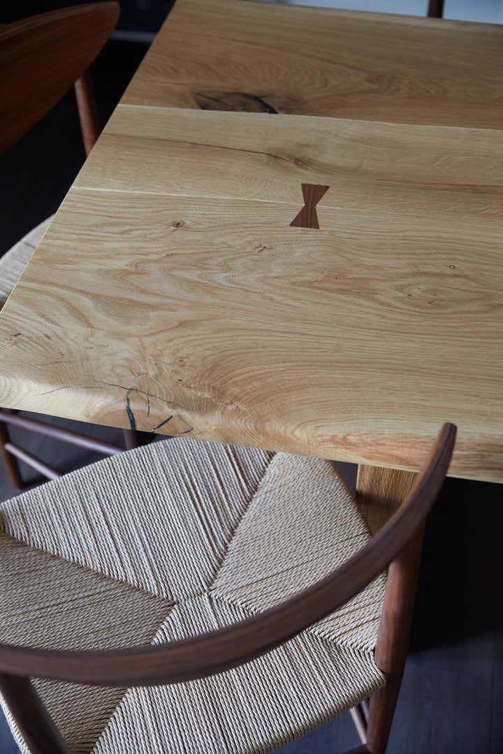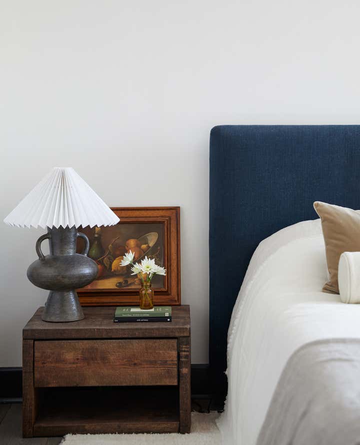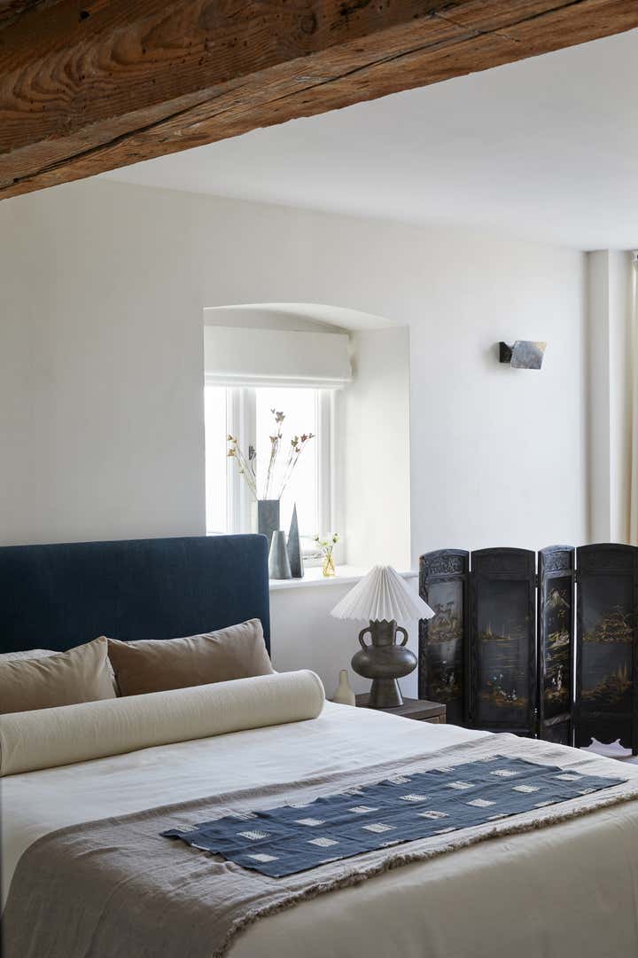 The space is dressed with light touch cultural patterns and modernist antiques.