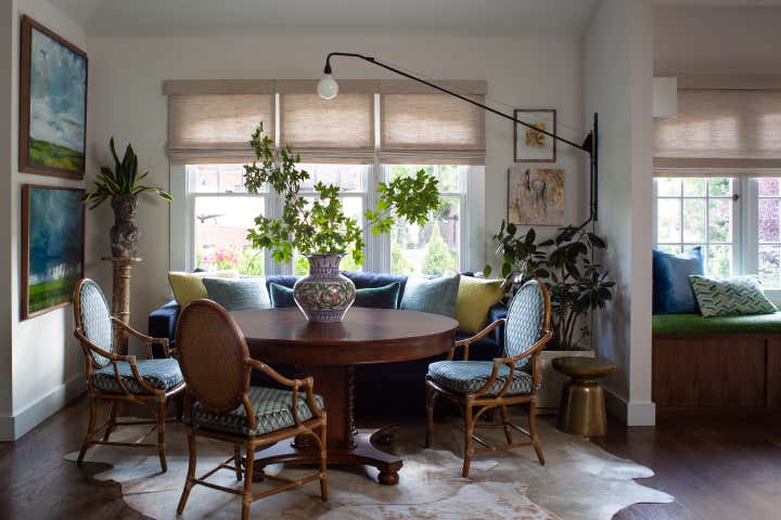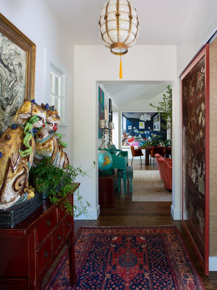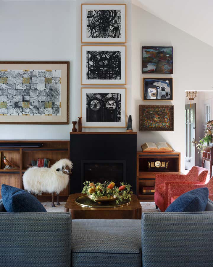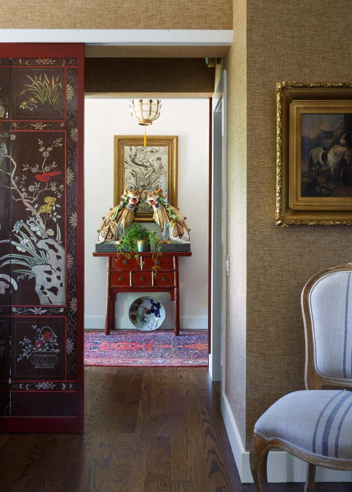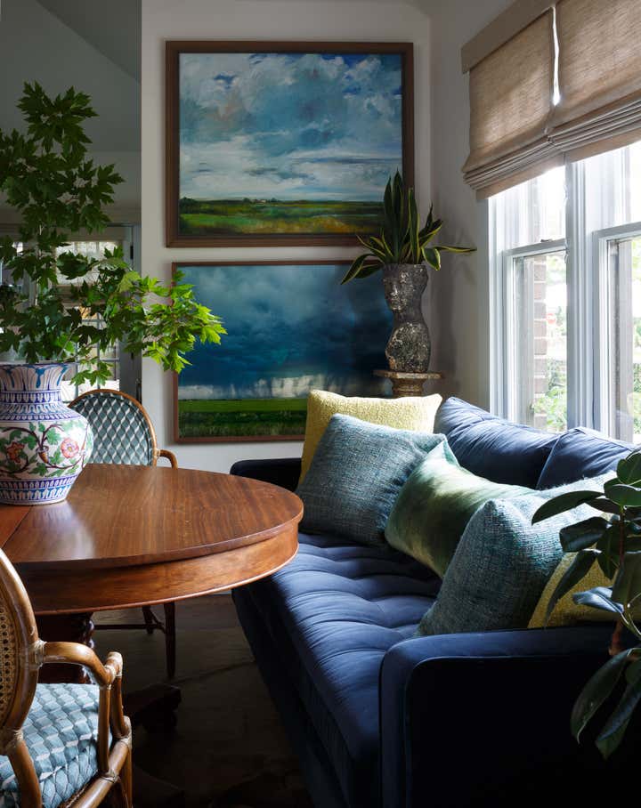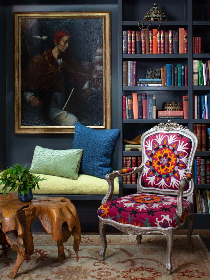 A Curated Home... rooms filled with the homeowners collection of art and antique furniture. Featuring fabric from the Nadia Watts Gem Collection by Kravet, inspired by Tiffany Studios Glass from the Neustadt Collection in Queens, New York. Design and creativity come naturally to Nadia, as she is the great-great-granddaughter of Louis Comfort Tiffany.