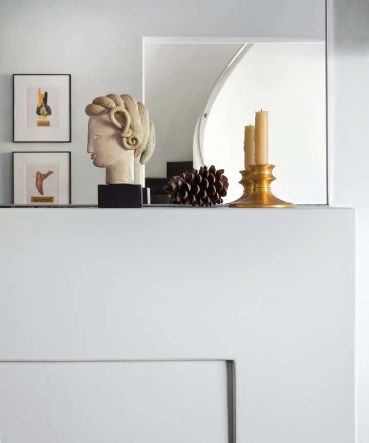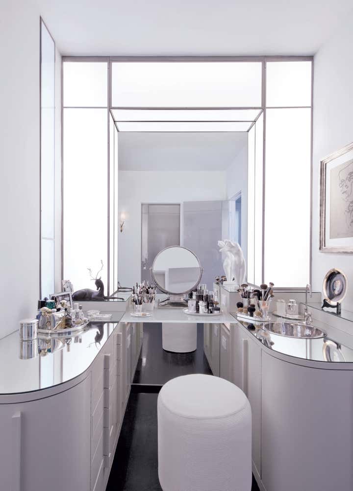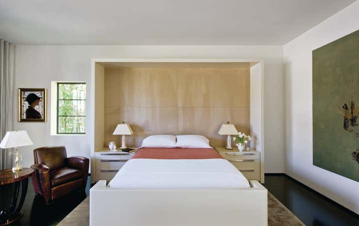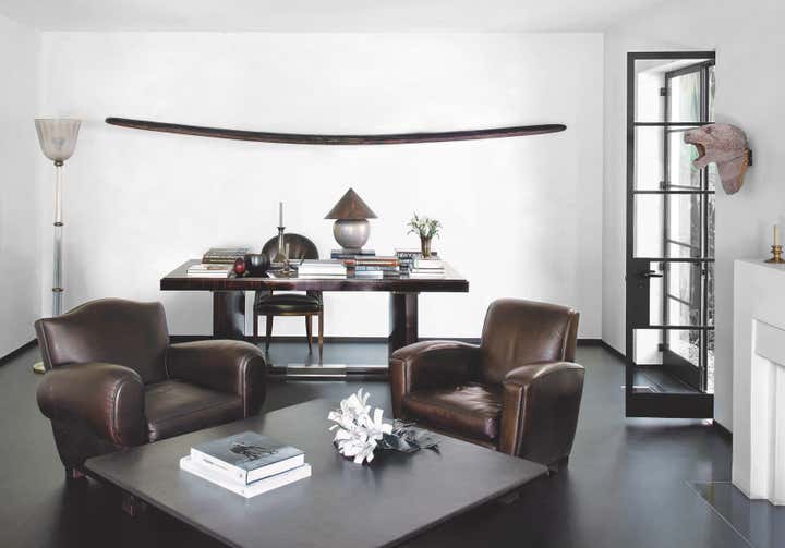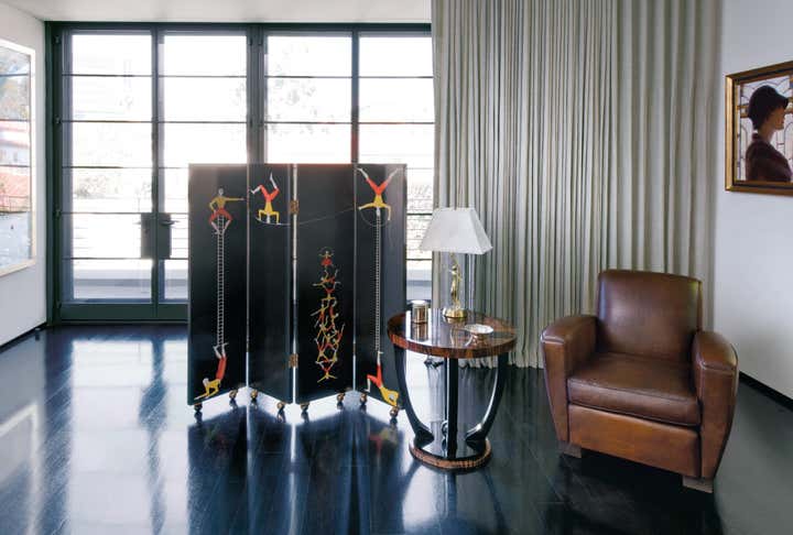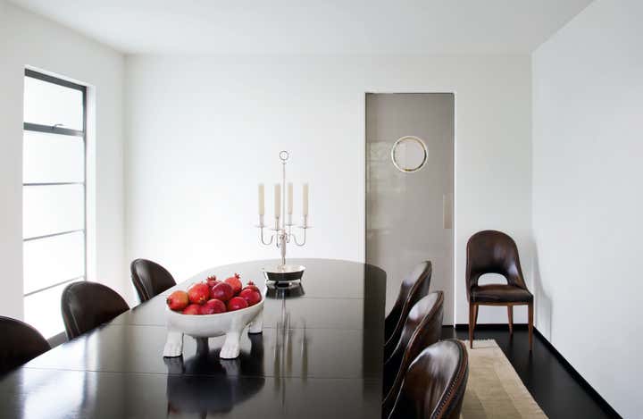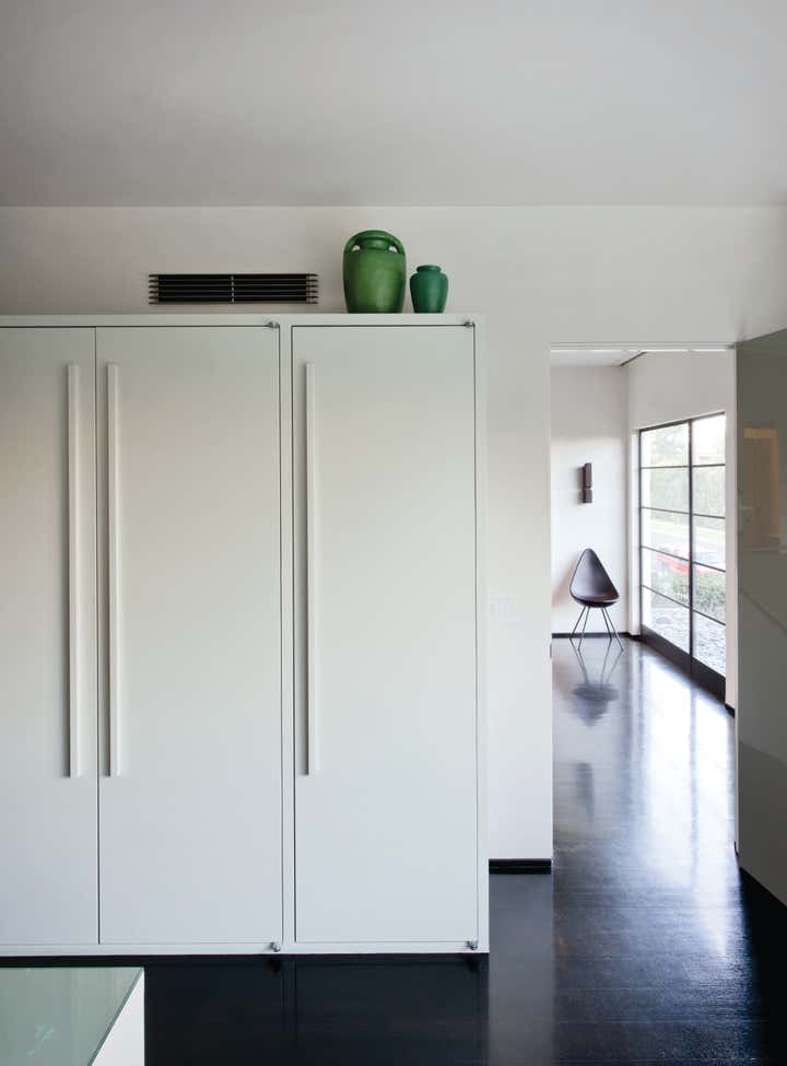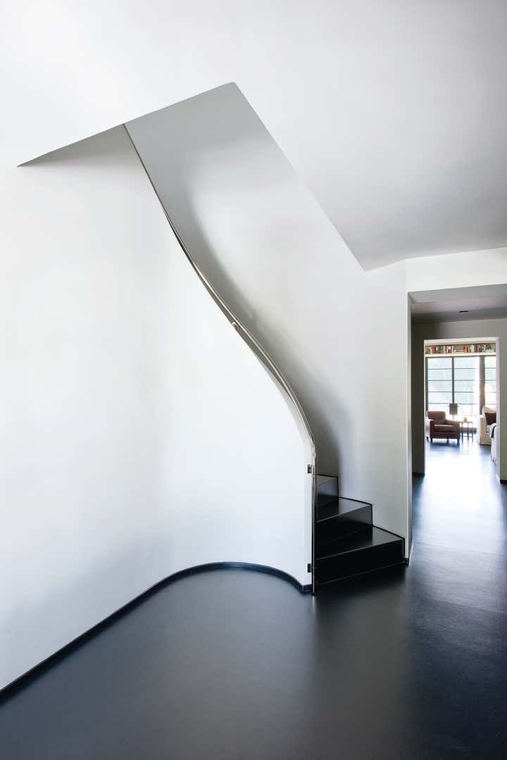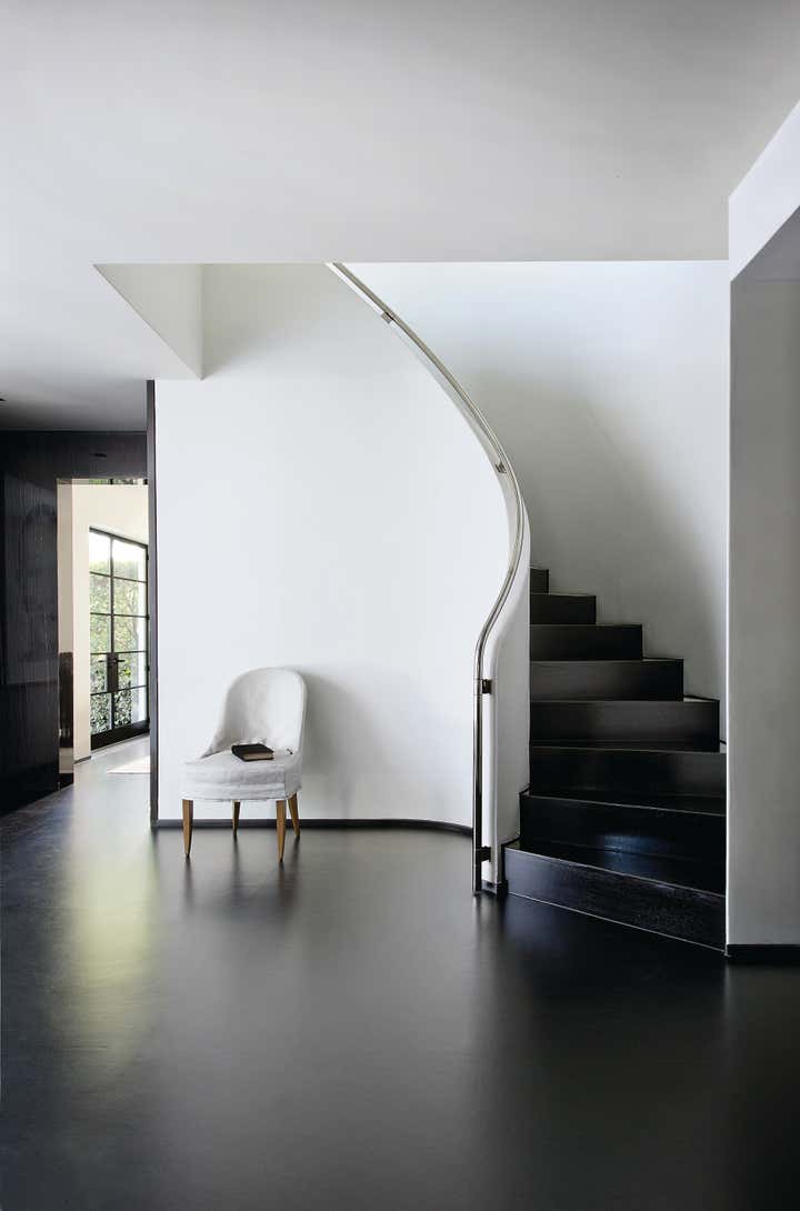 The opportunity to design a new, ground-up home for a client who wished to replace a small house with a new piece of architecture allowed me to in a most classic 1930s, American Moderne style very close to my own favorite tastes. In its composition everything is made to feel good and considered. What seems unadorned is not undetailed. A series of streamlined, squared volumes encapsulate an interior of elegant steppings and sinuous curves. With a stripped palette, an inky, French-polished ebony threshold and flack linoleum floor present a solid ocean for furniture to be cast in. Its low-buffed finish cascades light that bathes each cavity with a sultry glow.