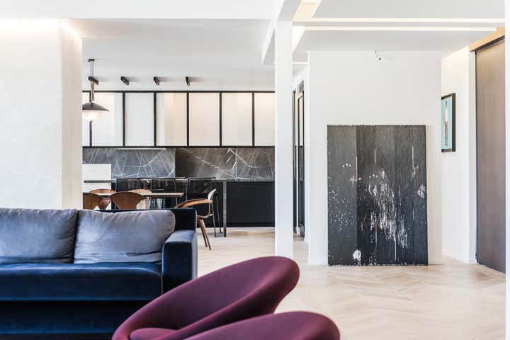When I visited this flat it was an office. I rebuild it on both aspects : architectural and décoration.