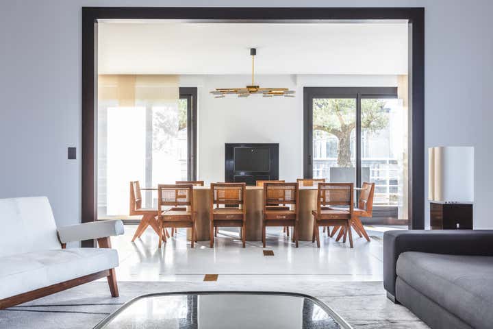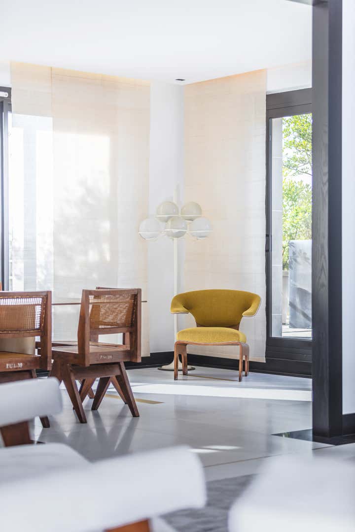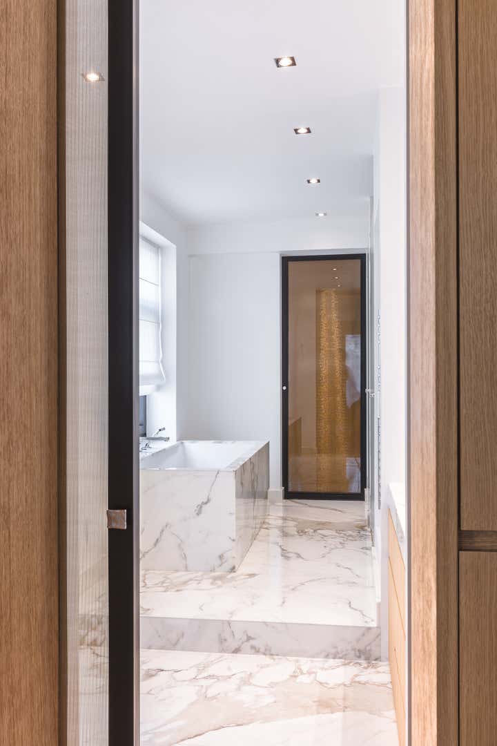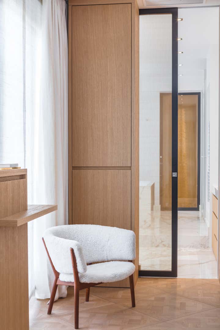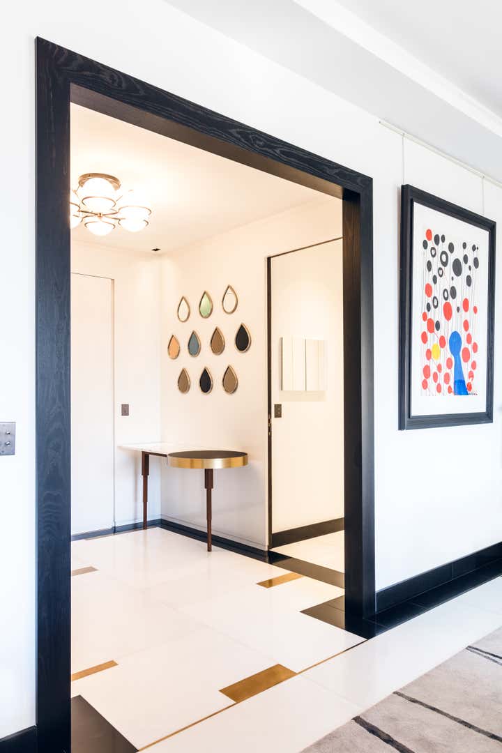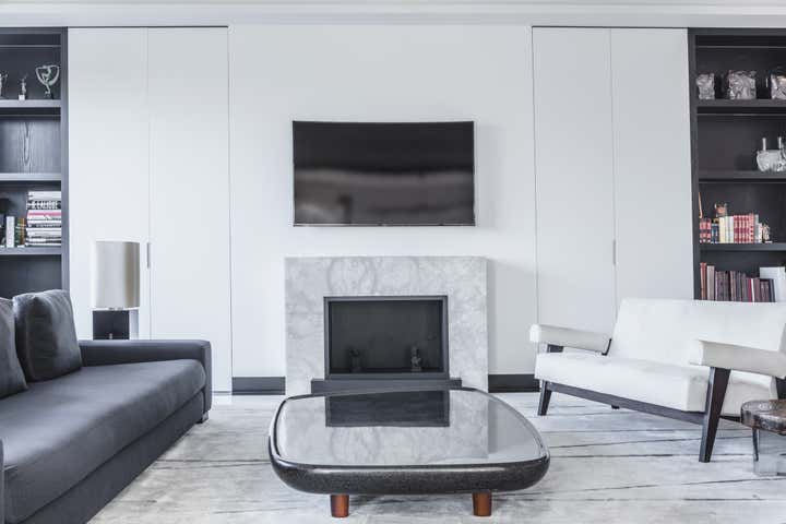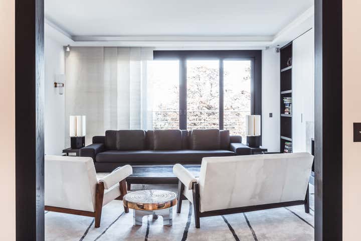 My clients live between two countries. They wanted their parisian apartment to be set so that they could host. The penthouse views is the Boulogne s wood and is surrounded by an outdoor space. I favour a minimal architecture and decoration creating something warm to enhance the horizon and trees.